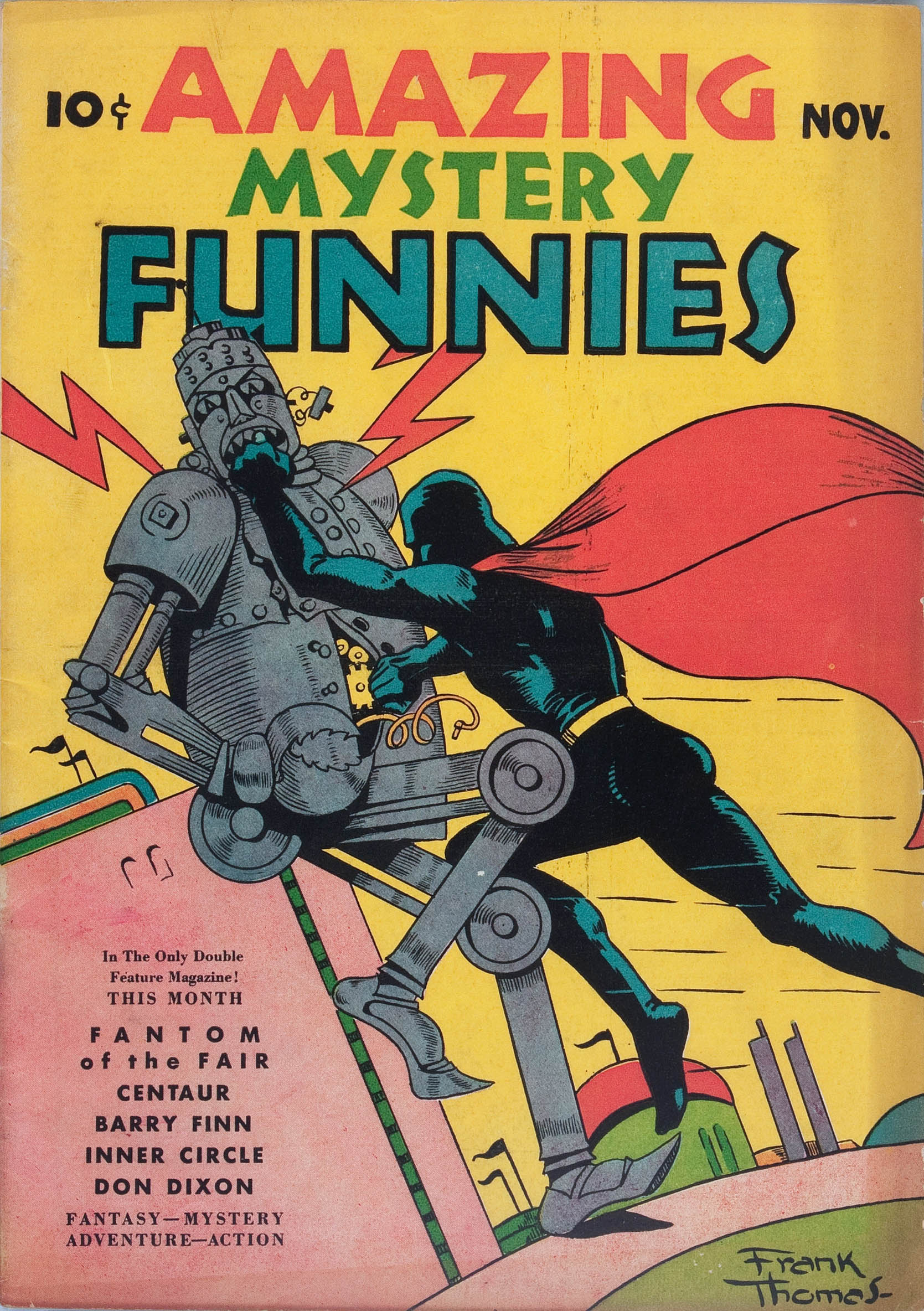 Fantom of the Fair qui est la création du dessinateur Paul Gustavson et apparait au total dans une quinzaine d’épisode repartis entre Amazing Mystery Funnies ainsi qu’un numéro d’Amazing Adventures Funnies mais également un titre qui lui est consacré.