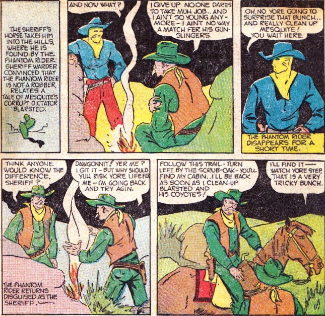 The Phantom Rider est un mystérieux cavalier opérant pendant l’époque du Far West américain. Il porte en permanence une cagoule dissimulant complètement son visage.