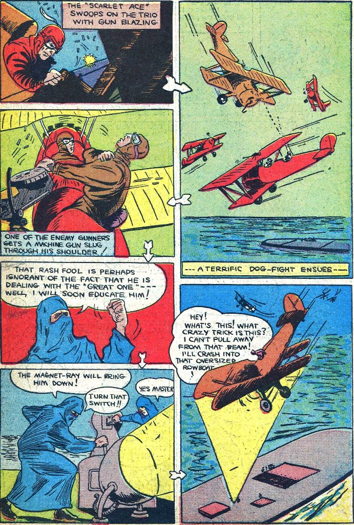 Lorsque The Great One s’échappe aux manettes d’un avion, The Scarlet Ace le prend en chasse. Mais alors que ses mitraillettes s’enrayent, The Great One triomphant se dresse dans on avion et bascule vers le néant.