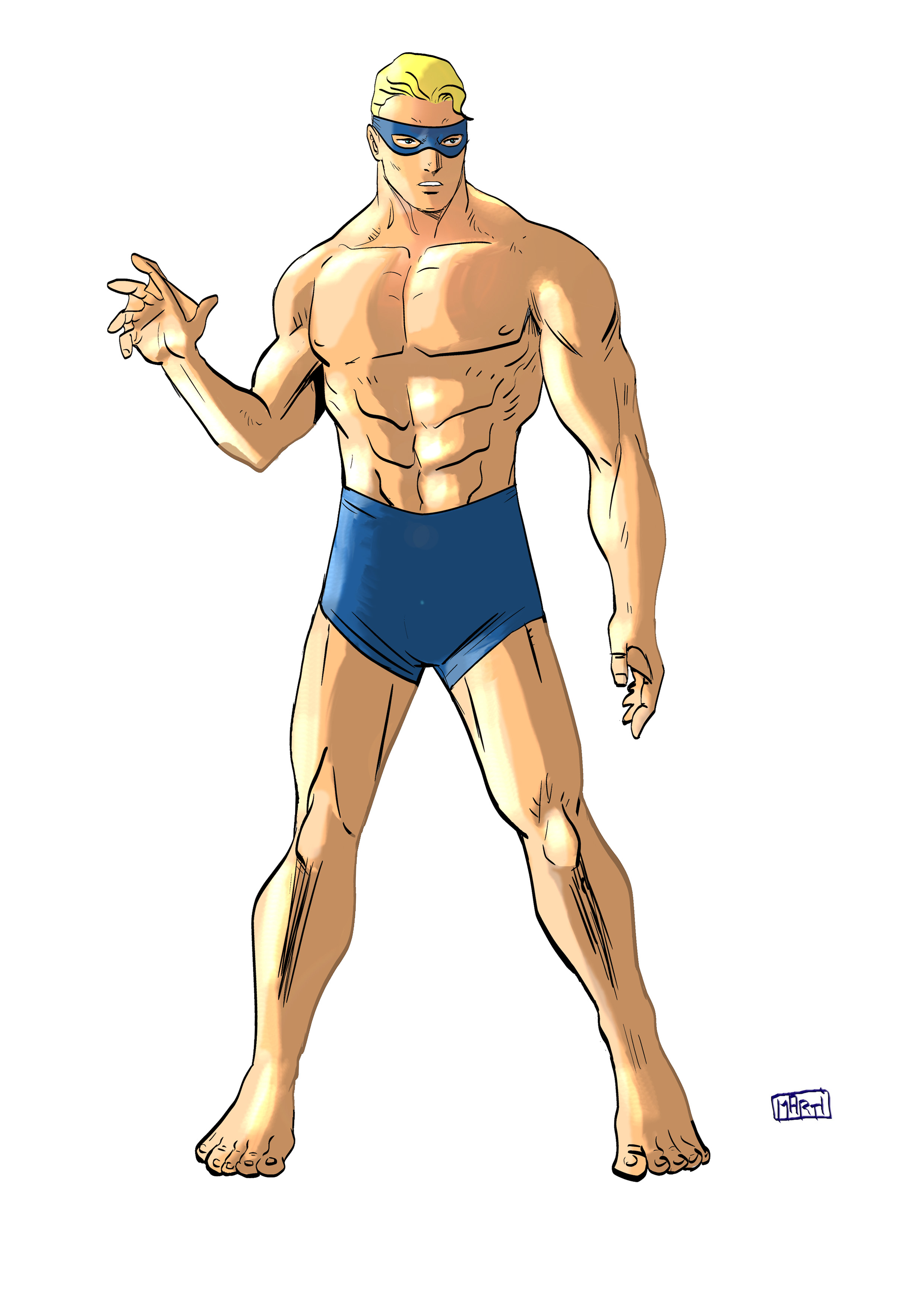 Il est capable de nager aussi vite qu’une baleine grâce à ses mains et des pieds palmés. Il possède également la force de dix baleines lorsqu’il est dans l’eau. Mais une fois à l’aire libre il est aussi faible que n’importe quel homme.