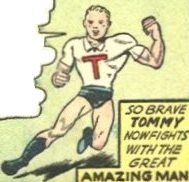 Tommy est le jeune frère de Zona Henderson, la grande amie d’Amazing Man. Tommy est un grand admirateur d’Amazing Man et Zona l’emmène un après-midi chez son idole. Elle interdit d’aller dans la pièce qui lui sert de retraite.